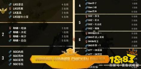 赏金赛后期,不求人带领DKG战队奋起直追,接连吃鸡,成绩斐然。在半决赛中,DKG战队直接夺得第一,其中不求人更是实现了该场比赛的最高成绩----单局7杀。
