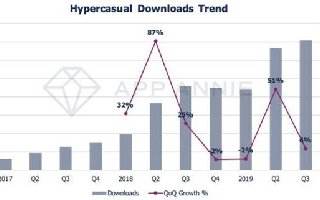 从2019年下半年开始,海外超休闲游戏市场开始进入存量阶段。App Annie发布的数据显示,在2019年Q2全球超休闲游戏下载量比2018年同期增长了5-6亿,但是可以看到2019年Q3环比增长率已回到2018年Q4的水平,开始进入存量阶段。玩家总量不变而入局者增加,导致大部分发行商对于超休闲游戏的发行要求也提高了,发行产品的最低次留标准从最早的35%提到了超过45%甚至50%。