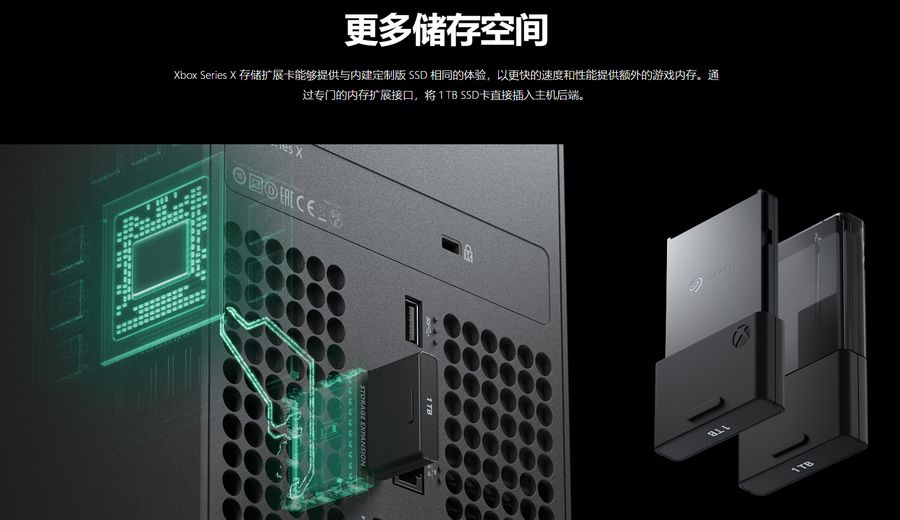 7月20日消息,Xbox Series X虽然还未上市,不过近日Xbox Series X存储卡官网已经上线,据外媒MSPoweruser消息,Xbox Series X将内置1TB固态硬盘,但考虑到现在游戏容量越来越大,微软专门为玩家提供了扩展储存卡,该储存卡为微软和希捷联合开发。