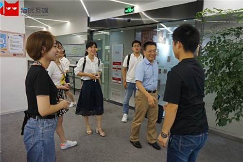 南京猫玩CEO余洋陪同季文副院长,黄尧总经理一行,在参观南京猫玩的办公区及企业文化荣誉墙、休闲区等特色区域的过程中,详细介绍了南京猫玩在当地的扎根和发展的经历、公司当前深耕的各项产业业务及产品情况,以及在移动游戏行业的完整生态战略布局。