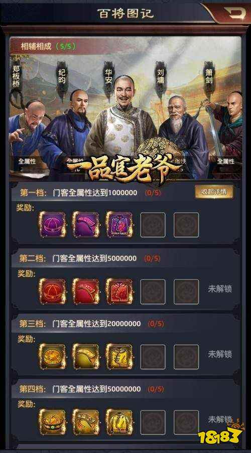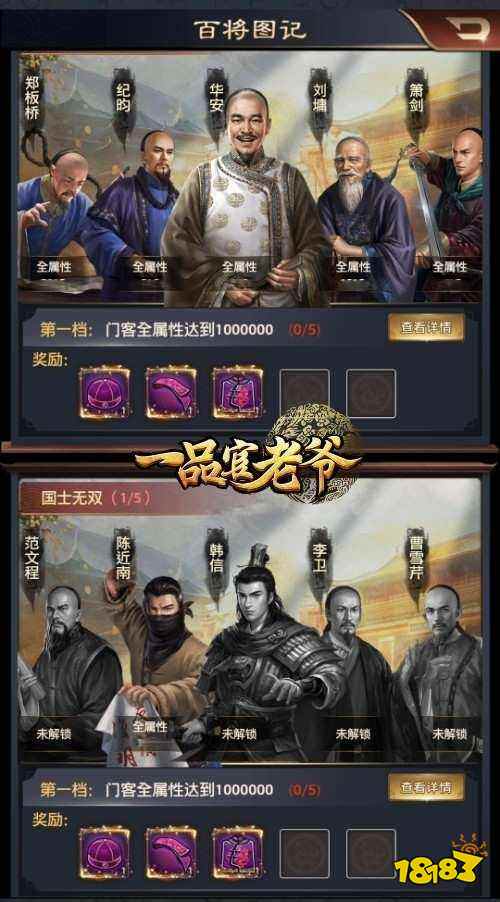 其中攻无不克和运筹帷幄内的门客都是在主线中就能领取到的,另外十四个门客也基本是玩家的初始门客和易获取门客,其中魏征这一门客就能通过关注《一品官老爷》微信公众号来免费领取。也就是说,即使是平民玩家,也能以完成百将图记作为门客培养目标。