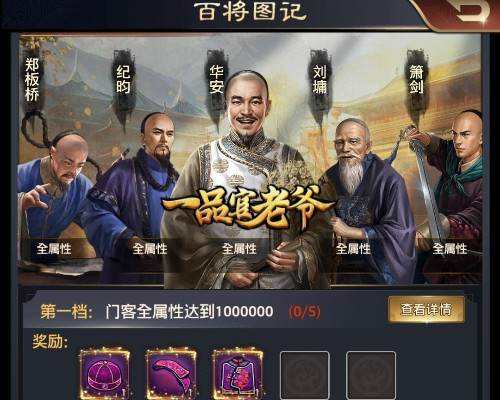 门客培养是《一品官老爷》的核心玩法之一,但是对新人而言,要在短期内了解众多门客并从中挑选一二作为培养对象,还是有一定门槛的。幸运的是,根据官方上线的门客成就系统(百将图记),新人玩家不仅能通过百将图展示的门客来选择培养对象,免去门客研究的烦恼,还能缩短升级培养门客的过程(例如爵位服饰收集),提高战力培养效率!