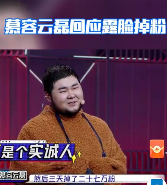 一开始的慕容云磊在没露脸之前,还只是个只有几十万粉丝的声优,在大家对他样貌有着无限遐想的时候,他露出了自己的真容。这一露脸,粉丝急转直下。在蓝莓孵化营上自己曾调侃道,露脸之后三天他就掉了二十七万粉。