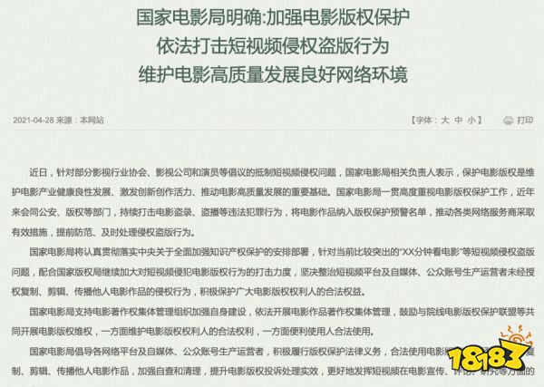 爱优腾芒联合500余名艺人发出影视版权保护倡议书(下称倡议书),紧接着,国家电影局明确表示:配合国家版权局,整治短视频和自媒体等运营者未经授权复制、剪辑、传播他人电影作品的侵权行为。而这些指向也是目的明确,就是包括抖音、快手、微博、B站在内的各大短视频平台!但是目前各大平台依然没有回应,短视频平台们集体缄默的背后,对用户流量下滑的担忧和对既有内容生态的破坏,可能是平台们最大的顾虑。