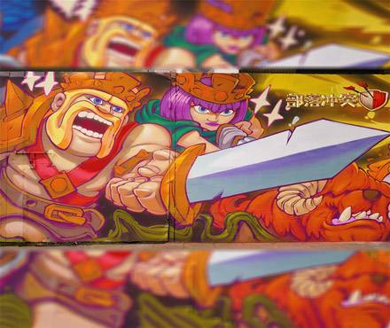 本次以部落冲突战宠系统为灵感的联动涂鸦艺术作品,完美地诠释了每一位英雄和战宠间的组合羁绊,将人宠协力抗击邪恶势力的力量感展现得淋漓尽致。夸张人物表现、浓墨重彩的视觉呈现,给观众带来超强冲击力!