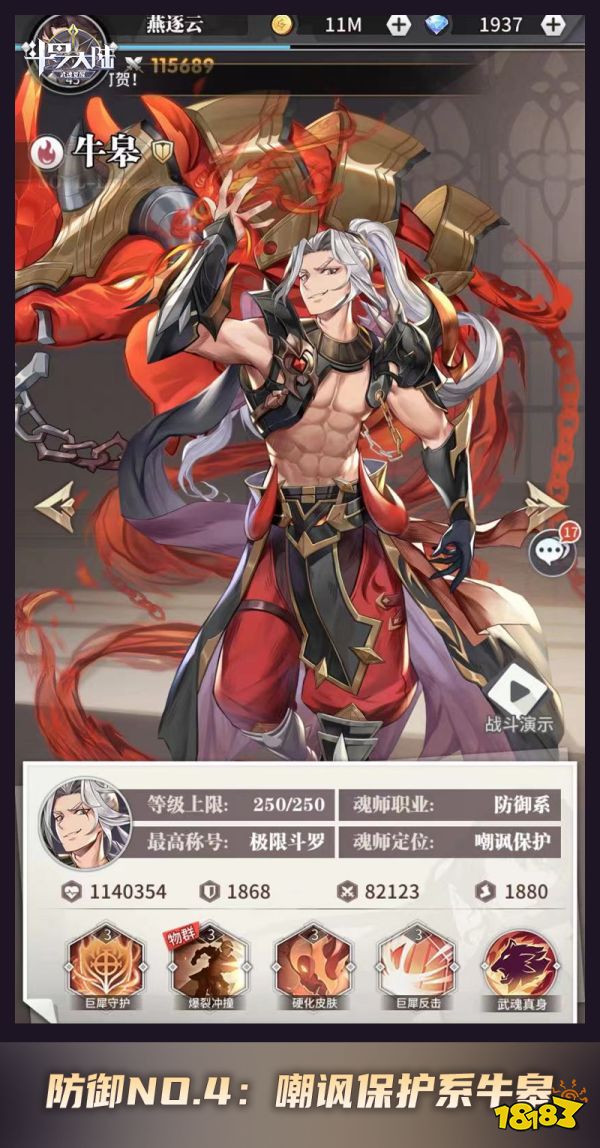 牛皋是目前《斗罗大陆:武魂觉醒》登场的防御系魂师中较为特殊的一位,具备强大的“嘲讽”技能。