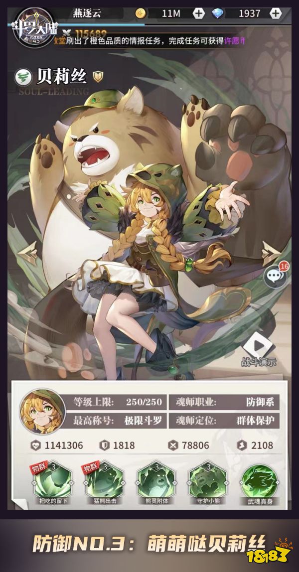 贝莉丝可以说是目前《斗罗大陆:武魂觉醒》防御系魂师中的颜值担当,别看贝莉丝萌萌哒,但她确实是当之无愧的前排小能手。