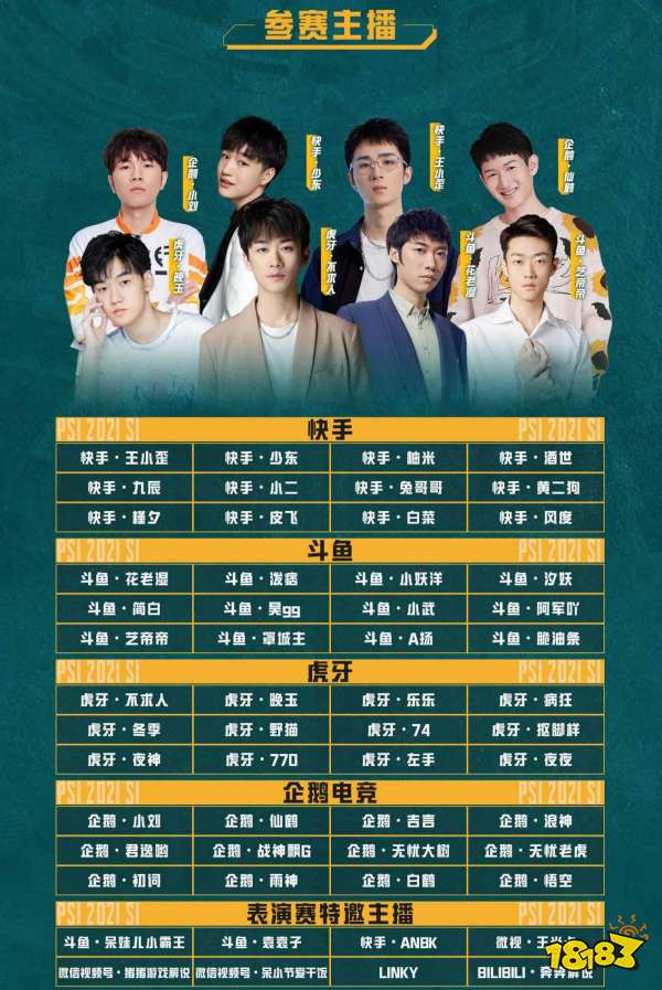 和平精英客户端、斗鱼直播、虎牙直播、快手直播、企鹅电竞、腾讯视频、视频号、哔哩哔哩、腾讯微视届时将同步直播本届PSI。