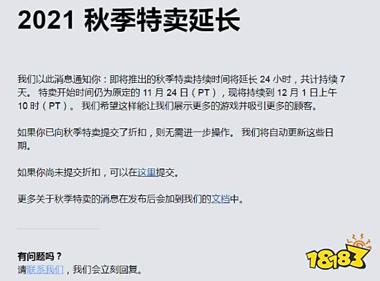 据Steam发布的最新邮件显示,2021秋季特卖将延长1天。