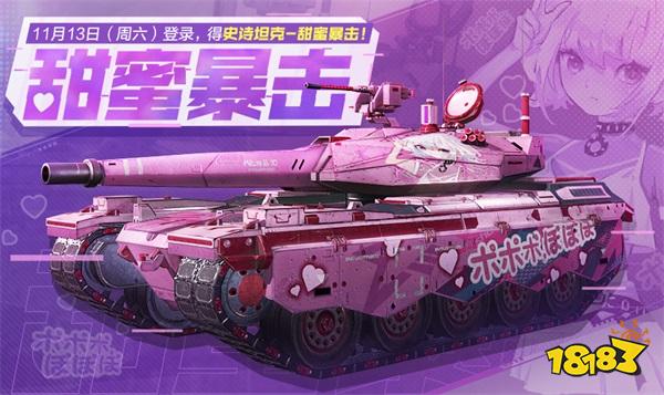 11月13日,主题活动甜蜜暴击于战场开启,战士们只需完成登录任务,就能获得少女心爆棚的史诗级坦克-甜蜜暴击!