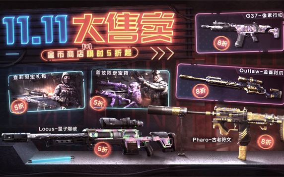 11月11日-11月14日,金币商城即将开启狂欢活动,上新和折扣缺一不可!在活动期间内,已上线的道具以及返场的历史自选宝箱统统8折!