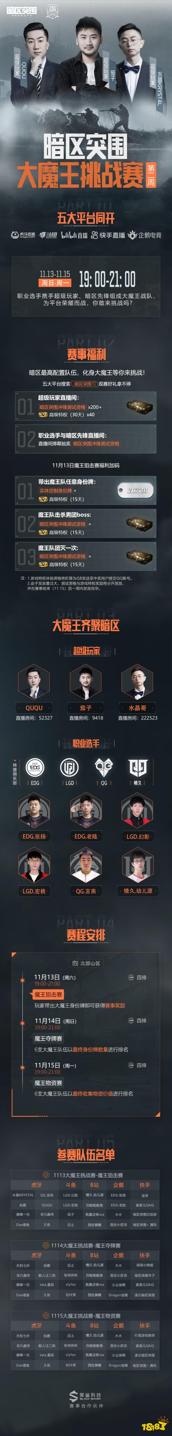 五大平台同步直播,超级玩家、职业电竞选手、暗区先锋代表齐聚大魔王挑战赛!冲锋测试启动以来,真硬核射击手游《暗区突围》兼俱竞技性、教学性、观赏性的大魔王挑战赛直播吸引众多玩家高能关注及赏评互动。11月13日-11月15日,《暗区突围》大魔挑战赛第二周赛事接力打响!参赛选手阵容升级,@EDG电子竞技俱乐部 @LGD电子竞技俱乐部 @QG俱乐部 @情久电子竞技俱乐部,一线电竞俱乐部选手集结出战,使赛事更添竞技含金量。精彩的大魔王对抗,千万不要错过!