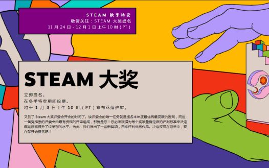 今日(11月25日),Steam秋促正式开启,海量游戏开启打折促销活动。与此同时,今年的“Steam大奖”评选活动正式开启,共有10个奖项等待着玩家们投票评选,同时完成相关任务也能获得徽章奖励。投票时间从今日起,截止至12月2日凌晨2点。1月4日凌晨2点宣布大奖花落谁家!