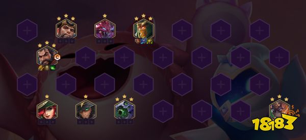 阵容组成:无畏重炮、海上幽影、命运之手、虚空重炮、御界守、地火霸主、虚空恐惧、双枪女帝