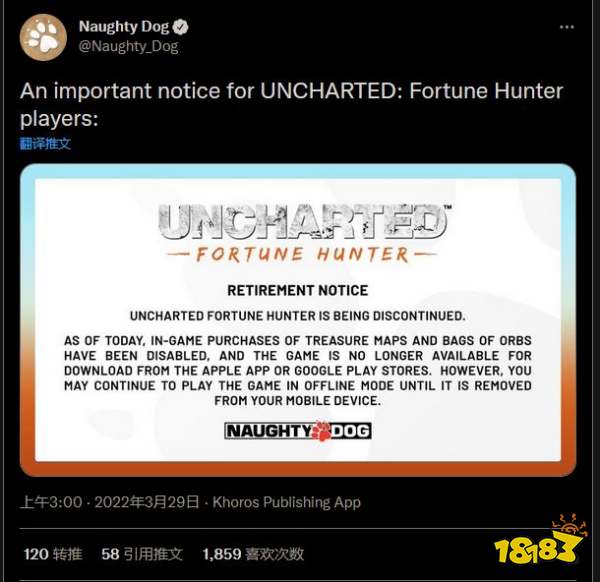 顽皮狗没有说明为什么要关闭《财富猎人》,但可能是由于顽皮狗将优先事项转移到新项目上,相对于维持其运行所需的资源而言缺乏玩家。