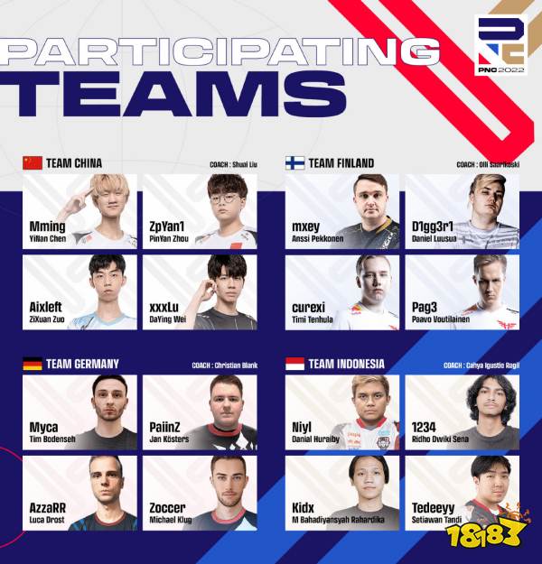 中国大陆赛区出战的四名选手当中,有两名来自2022春季赛冠军队伍NH战队,一个是今年春季赛排名第一的伤害王、包揽MVP和战神称号的ZpYan1选手,另一个则是有着鸡尼斯记录——个人累计淘汰【900人】的Mming选手;另外,4AM战队的xxxLu选手作为新生代的力量,有着强大的心脏,擅长逆风带领队伍拿下比赛;而Aixleft选手在刚刚结束的PCS6东亚洲际赛中带领队伍登顶冠军宝座,又拿下赛事MVP和淘汰王!两支冠军队伍选手外加超新星选手又将擦出怎样的火花?让我们拭目以待!
