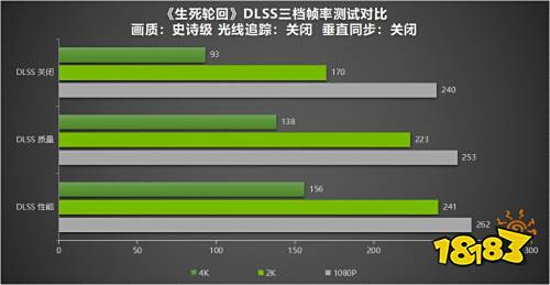 再来看看开启光追下的NIS测试数据对比,在开启NIS图形增强性能档后,游戏都能跑到较为流畅的一个水平,可见RTX 3070 Ti在《生死轮回》中运行2K和1080P已经是毫无压力了,在4K的情况下开启DLSS或者是NIS技术性能档也依然能流畅运行。
