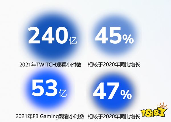 在视频直播层面,2021年Twitch平台上的观看小时数超过240亿小时,相较于2020的170亿小时,同比增加了45%。类似的是,FBGaming相较于2020的36亿的观看小时数同比增加了47%,在2021年达到了53亿。