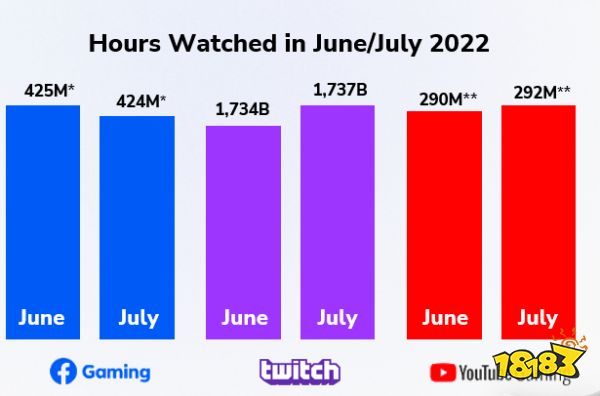今年上半年,在数据持续下跌三个月后,从4月份至今,数据峰值明显回升,对比6月和7月的数据我们有理由相信收视率已经趋于平稳。但尽管如此,与2020年前四个月同期比较,Twitch增长了64%,FB Gaming增长了118%。