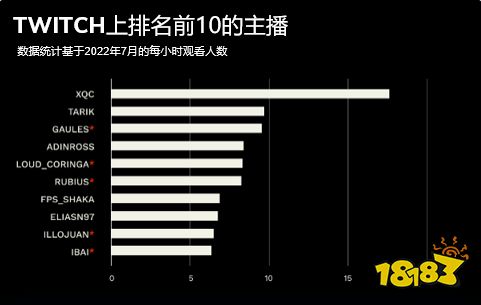 一段时间以来,Twitch 的前10名涌现大量拉丁美洲主播,Gaules 和 Ibai 在今年不同的时间点上都占据过榜首。7月,前10名主播中有一半来自拉丁美洲,这说明西班牙语和葡萄牙语观众对直播的青睐程度很高。