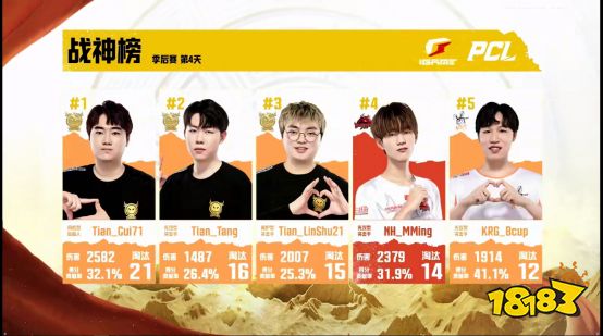 选手榜单:NH战队MMing选手荣膺季后赛战神