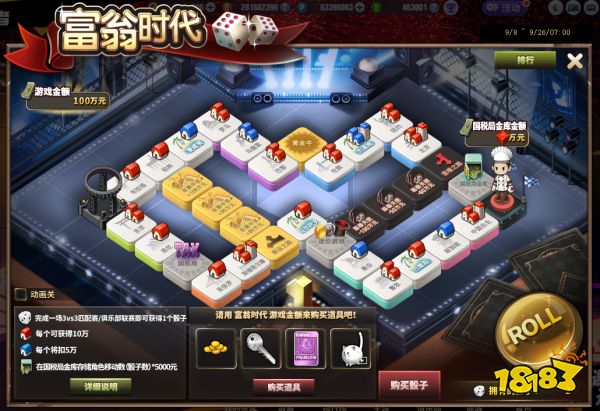 活动规则:完成一场3vs3匹配赛/排位赛/俱乐部联赛即可获得1个骰子。根据抛出的骰子结果,移动相应的格子。每次到达有红色建筑物的地区时可获得10万/1个建筑物。每次到达有蓝色建筑物的地区时可扣除5万/1个建筑物。在国税局金库存储角色移动数(骰子数)*5000元。收益到了0元就不会继续扣。骰子可以购买。
