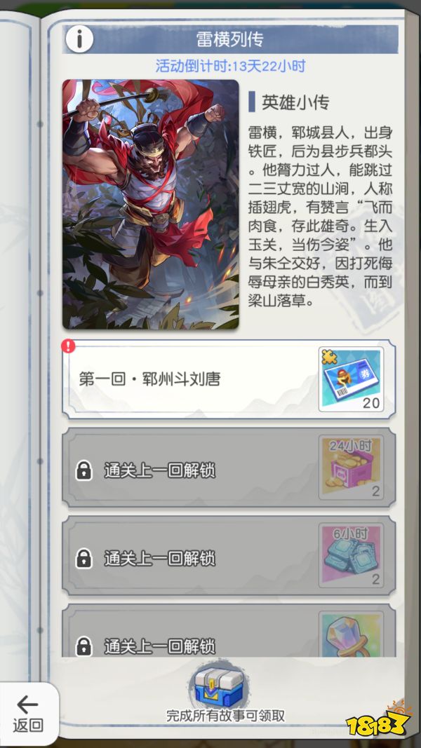 在游戏更新后,浣熊镇图书馆将会正式收藏《雷横列传》的精彩故事小集,故事中将会讲述雷横是如何从一个远近闻名的雷都头,变成一个震撼梁山的“插翅虎”哒!