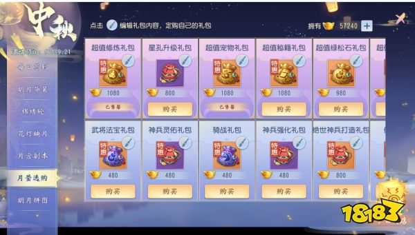 此次活动,无双在节日商店为各位少侠准备了精彩的月莹礼包回馈。超值修炼礼包、星孔升级礼包、武将法宝礼包、超值秘籍礼包、绝世神兵打造礼包.......诸多礼包特价上架,任君挑选,自由订购。待第二周更新后上限将会刷新,届时少侠们可再次购买心仪礼包。限时回馈,机不可失,愿丰厚的礼包能为各位少侠在战斗中带来裨益!