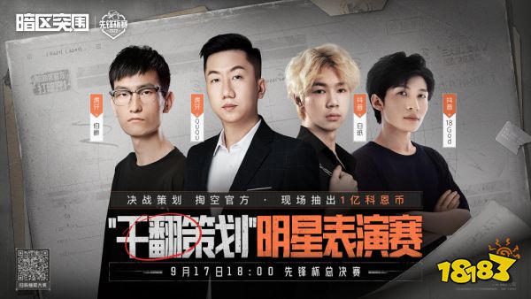 9月17日总决赛正赛打响前,由牧童、QUQU领衔的明星主播队将会为我们带来一场“干翻策划”的特殊表演赛。他们将与策划同场竞技,决出最高带出物品价值。如果明星主播队取得胜利,现场将送出1亿柯恩币(分10人获得)的豪华奖励。