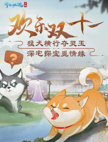 欢乐双十一活动期间18:00-22:00,【猛犬横行】玩法开放,等级≥50级即可单人参与!躲避横冲直撞的猛犬,巧夺暗藏着富饶的灵玉宝箱!四名玩家相竞夺取灵玉宝箱,在单局玩法3分钟内,开启最多宝箱并返回出生地的玩家将赢得胜利,获得丰厚奖励!