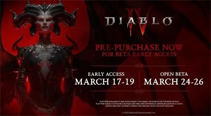 《暗黑破坏神4》Beta测试将于3月18日开启,本次测试面向所有预购《暗黑破坏神4》的用户,预购用户可以在对应的预购平台下载游戏。