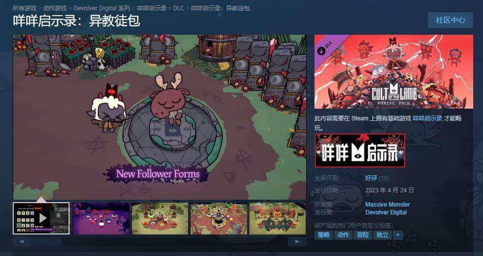 此外,《咩咩启示录》还发布了一个新外观DLC“异教徒包”,内含新教徒外观、一套邪恶的教会装饰,以及古老信仰的毛纺供圣羊穿着。《咩咩启示录》本体也在Steam开启了新史低促销,国区-35%折后价76.7元,优惠截止到5月9日。