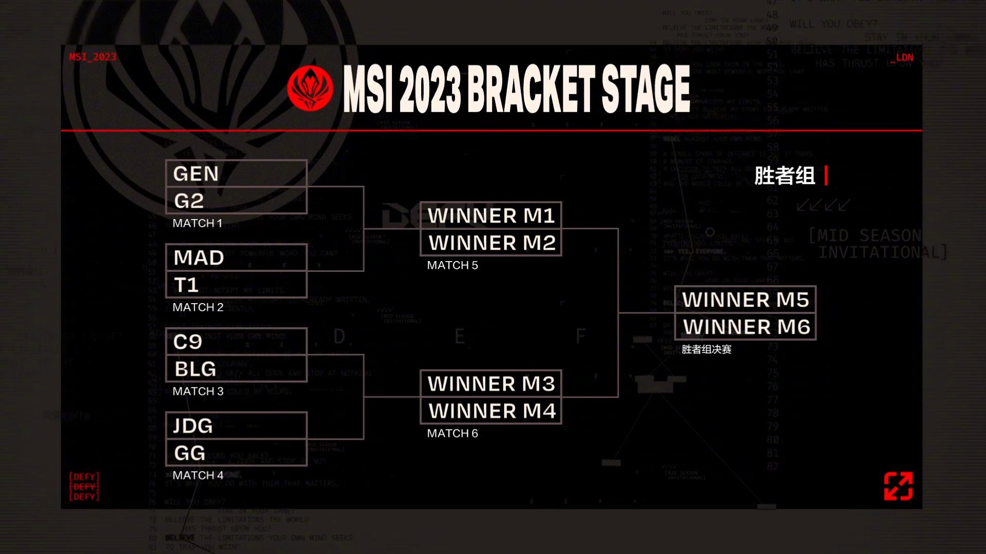 值得注意的是,2023 MSI胜败分组赛是双败赛制,除了胜者组还有败者组,但是国内《英雄联盟》官方只发布了胜者组的赛程图,《英雄联盟》官方推特发布了完整的赛程图,总共要举行14场比赛,每场比赛都是BO5,赛程十分紧凑。