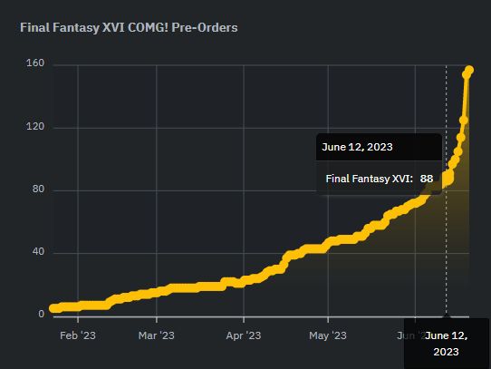 据日本电子游戏销售数据网站Nichebarrier统计,在《最终幻想16》的试玩Demo于本月12日上线后,游戏的预购量迎来一波激增。据之前官方透露,此次Demo的下载量很轻松就达到了7位数,但没说具体是多少。