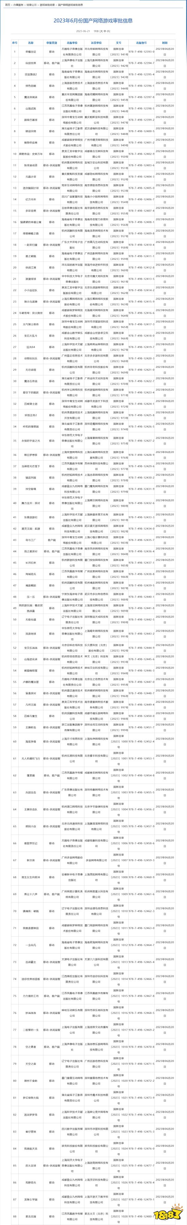 国家新闻出版署公布 6月国产网络游戏 过审版号名单,本次包括《荣耀出征》、《仙剑世界》、《燕云十六声》等共 89 款游戏过审。