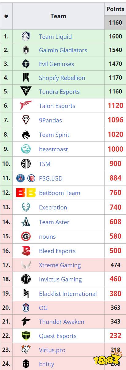 TI12积分,前12名中只有LGD在列,而且位置很靠后