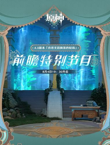 《原神》4.0版本「仿若无因飘落的轻雨」将于2023年8月16日上线。8月4日,《原神》4.0版本前瞻特别节目正式播出,《原神》项目组同学和大伟哥出镜,为各位旅行者带来关于新版本的内容预告。新版本中,提瓦特大陆的第五个国度「枫丹」正式开放。全新限定五星角色「惑光幻戏·林尼(火)」,全新四星角色「丽影绮行·琳妮特(风)」和「潜怀遐梦·菲米尼(冰)」将加入游戏。与此同时,限定五星角色「兰生幽谷·夜兰(水)」、「尘世闲游·钟离(岩)」、「公子·达达利亚(水)」将迎来返场。