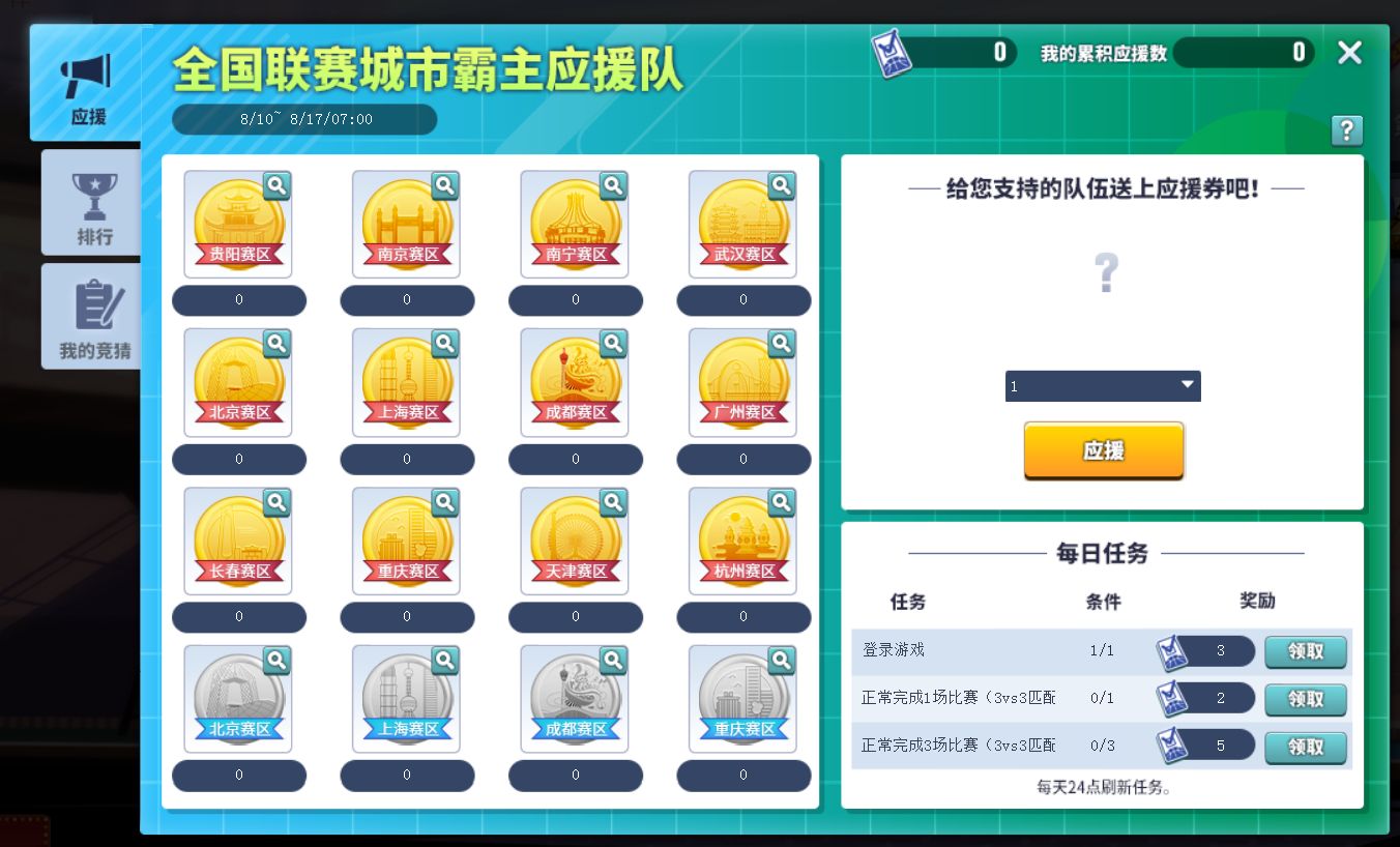 活动分为两部分: 每日应援排行奖励和冠/亚/季军竞猜成功奖