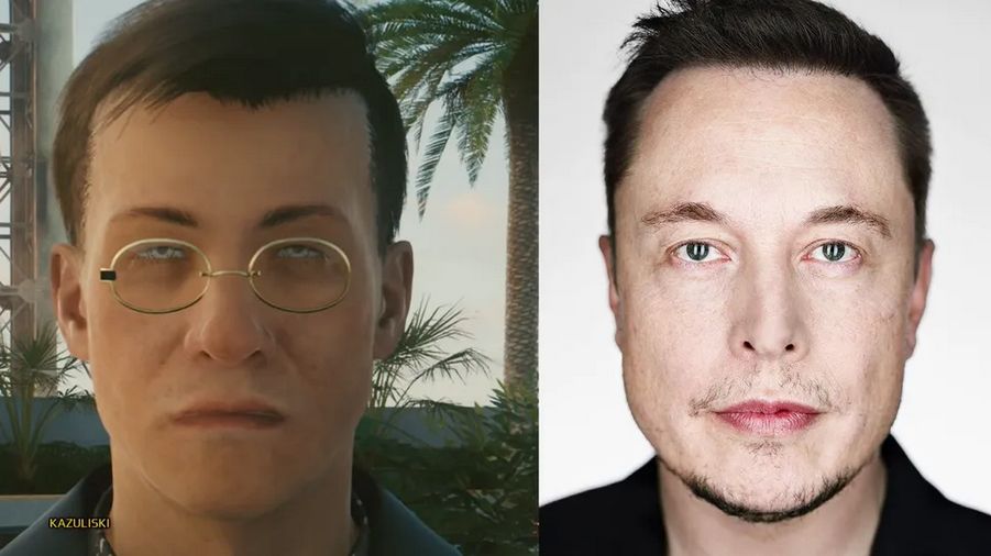 自游戏推出以来,网上一直充斥着游戏中某个 NPC 是否是以马斯克为原型的猜测。这位 NPC 在游戏中只出现一次。这个角色就是你在选择做一位“公司狗”为起源故事时,一开始照镜子会看到背后路过的一位 NPC。许多玩家认为他们长得十分相似,并坚信这就是马斯克。而且最近马斯克还透露,自己曾要求 CDPR 将自己加入游戏当中。