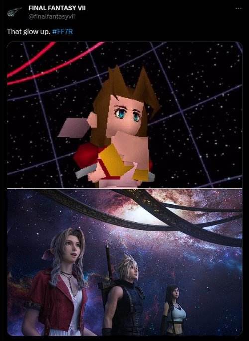 《最终幻想7:重生》官方分享了本作与初代《最终幻想7》之间的对比图,画质进步一目了然,星空在当下技术的加持下尽显浩瀚。