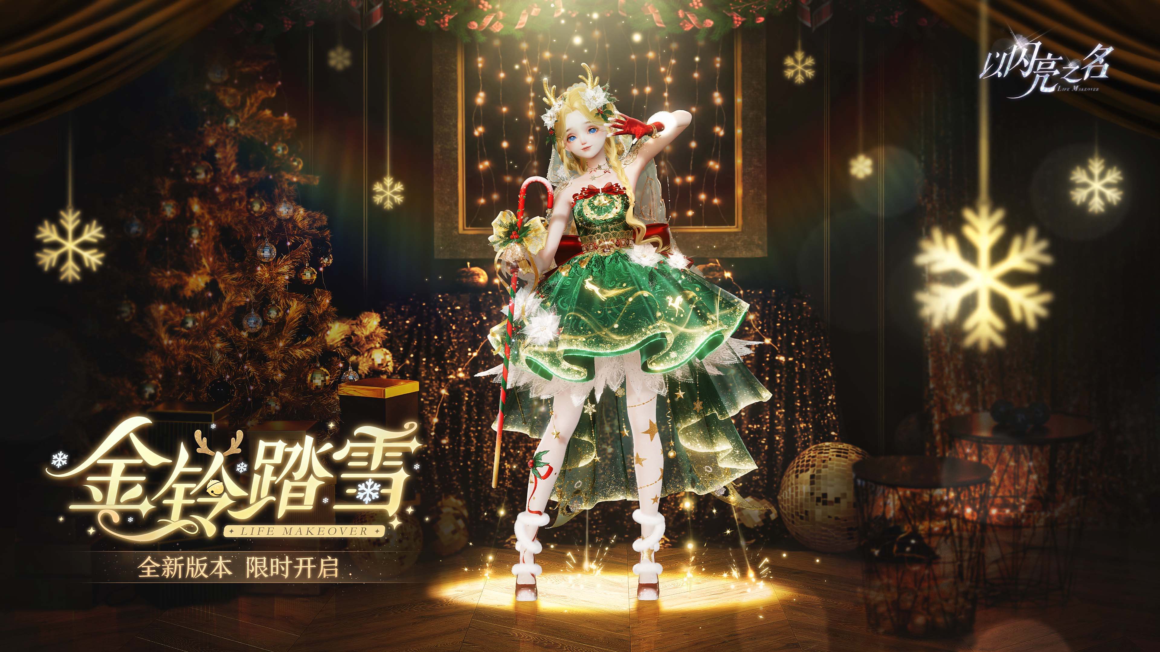 今日,《以闪亮之名》全新版本【金铃踏雪】已限时开启!即日起至2024年1月9日,双五星套装【驯鹿精灵】、【春祈套装】将在追光活动•金铃踏雪中限时登场。同时超多新年福利同步上线,更有价值68元的潮流密码时装免费送。雪花晶莹落下,篝火温柔跳跃,灯光熠熠闪烁,冬日信使将摊开的童话书化作梦幻伊甸送达。