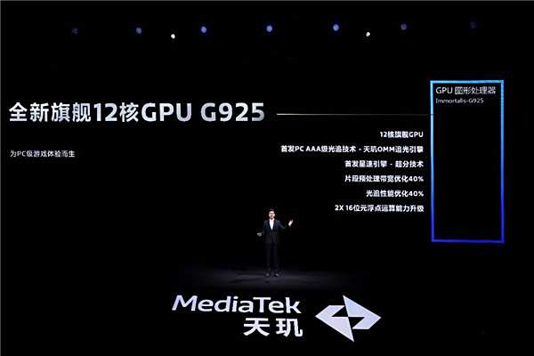 首先看GPU的逆天升级。天玑9400搭载全新顶级12核GPU G925,相较上代拥有超过41%的峰值性能飞跃,同时与上一代相同的峰值性能下功耗节省接近一半,不论是跑分测试还是游戏体验,都证明了天玑9400搭载的G925是最强的手机GPU,堪称三体科技降临。