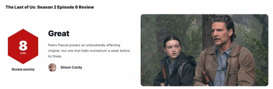 《最后生还者》第二季第六集今日开播,IGN为本集给出8分的好评。