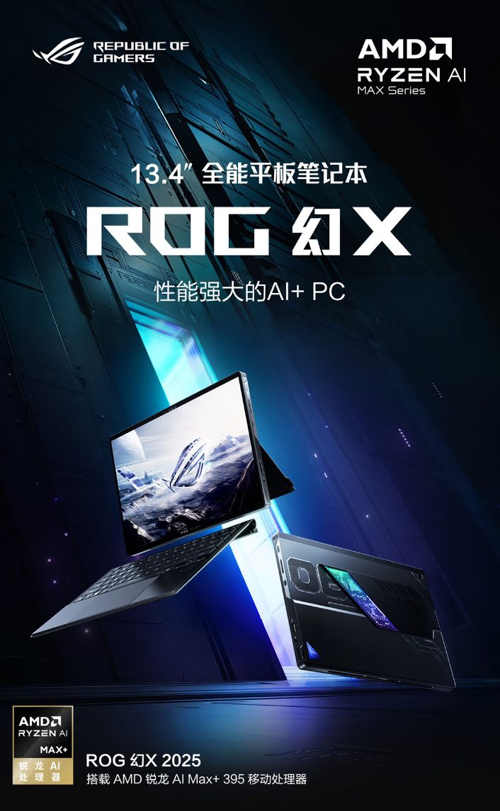 618年中大促火热进行中,配合国补政策,全能平板笔记本ROG幻X 2025到手价12599元起。其搭载第三代 AMD AI+ PC 移动处理器——AMD 锐龙 AI Max+ 395移动处理器,堪称真正的 AI+ PC 移动工作站。裸机轻约1.2kg薄至1.3cm,具备极佳的便携性,可在平板、笔记本、直立等多种形态间切换,完美适配多种场景下对于电脑的需求。
