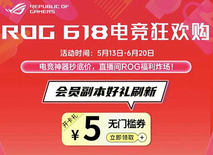 618好物节抖音ROG官方旗舰店福利拉满,单单满减折扣送礼,新人会员指定周边19元起,即刻点击进入抖音ROG官方旗舰店,锁定年中盛惠!