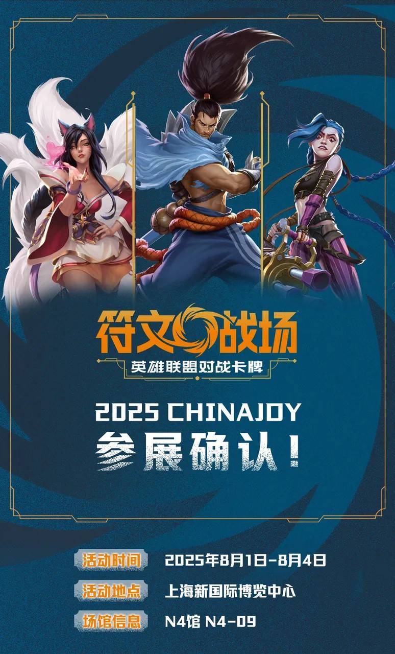 重磅官宣:基于《英雄联盟》IP打造的集换式卡牌游戏《符文战场:英雄联盟对战卡牌》确认参展ChinaJoy!8月1日-4日,我们在N4馆N4-09展位等你来打卡!