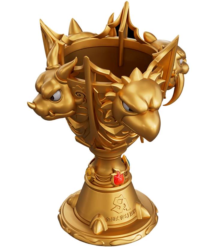 金色底座上的兽爪刻画出四圣兽盘踞的坚毅,更寓意着力量与荣威的复苏。谁能带着四圣兽之力加冕为王,夺得全国大赛·S3的冠军奖杯呢?我们拭目以待!