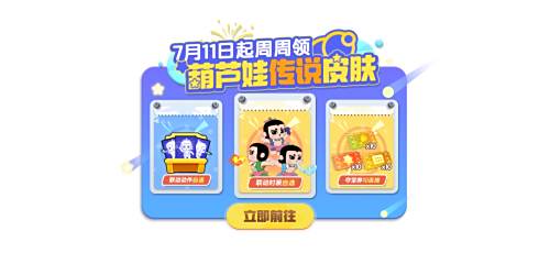 7月11日起,每周都能领取葫芦娃皮肤, 集齐全部款式,化身正义小英雄,同时累登累计可得赛季夺宝券*10,海量豪礼,免费解锁!