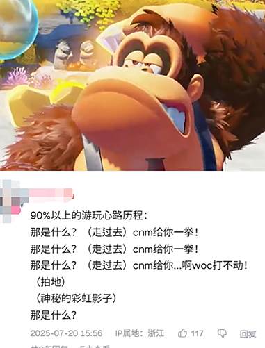 《刚蕉》与《马力欧:奥德赛》是同一个游戏开发组,在开发逻辑和玩法上有一些类似的逻辑。在我蹭玩朋友的《刚》后,我发现这玩意是这些年来,为数不多会让你像儿时一样废寝忘食游玩的游戏。