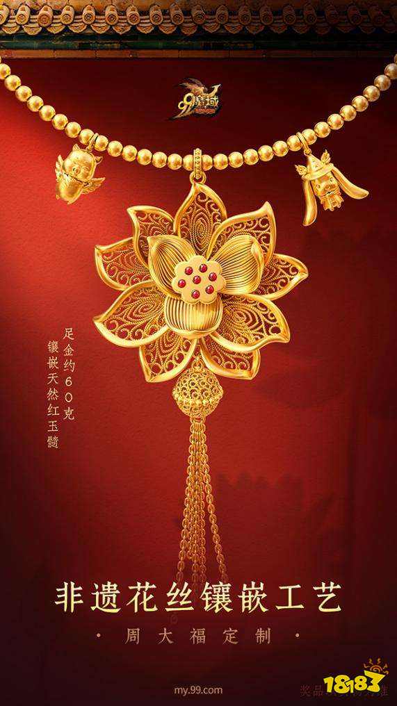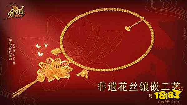本届花魁赛最耀眼的荣光,当属周大福为“圣莲神女”专属定制的【圣莲花丝·魔域鎏华】花丝镶嵌非遗足金项链。60克黄金淬炼为发丝般的金线,采用被誉为“燕京八绝”之首的中国国家级非物质文化遗产——花丝镶嵌工艺,以金丝为笔,通过掐、填、攒、焊、堆、垒、织、编等超百道宫廷秘技,将莲瓣的柔婉弧度凝作流云金纹——每道掐丝薄如蝉翼,在方寸之间展现出极致繁复的皇家气韵与千年工艺的深厚底蕴。999足金勾勒的莲蕊间,天然红玉髓如焰跃动,恰似花魁女神灼灼明艳的倾城之姿。这件价值逾10万元的艺术孤品,不仅是魔域与非遗的时空对话,更将倾世情缘铭刻于金丝脉络之间。